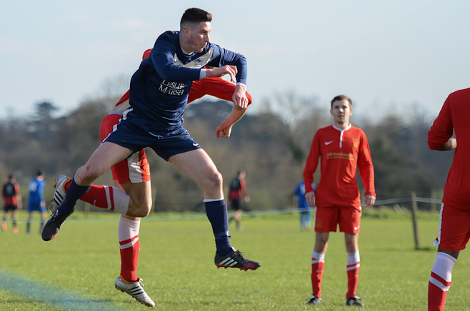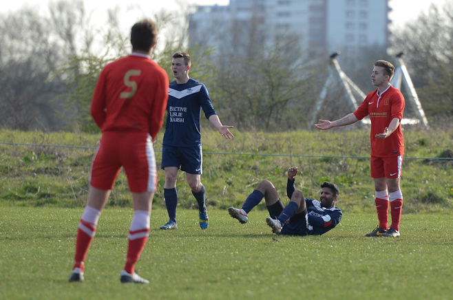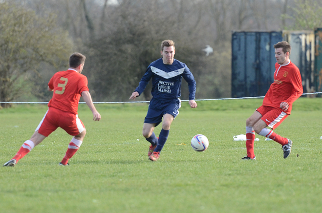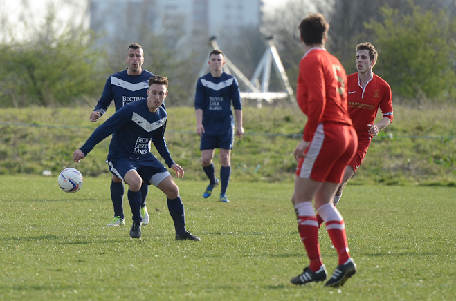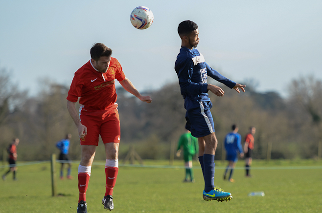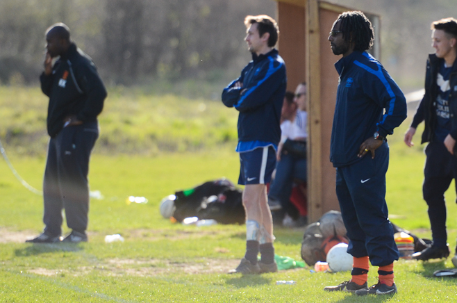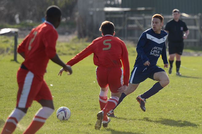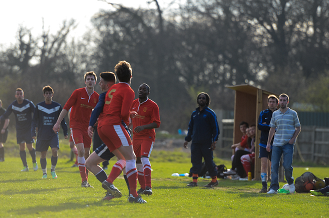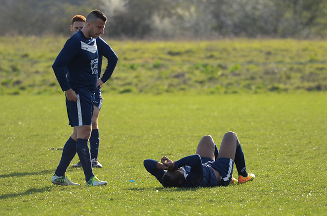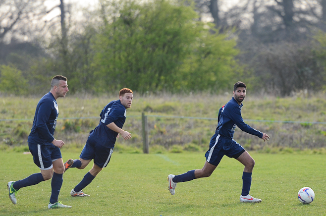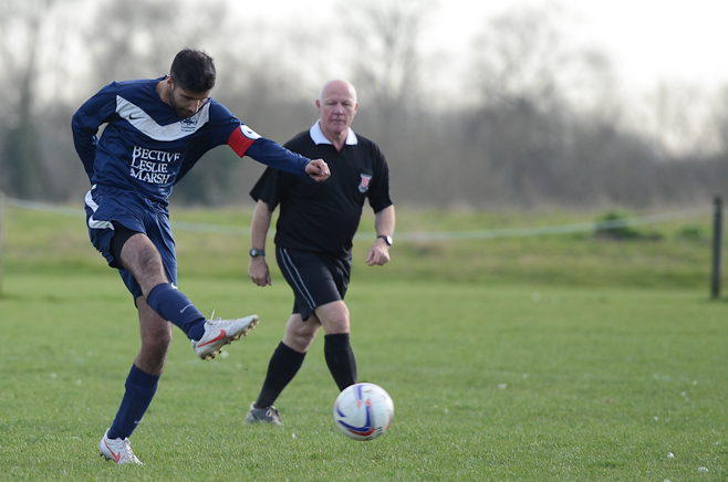 A disappointing defeat the previous week and the apparent glee tweeted by Sporting Hackney meant no additional motivation was required from the Manager in his pre match team talk. A strong squad took to another bobbly field at Osterley with the first 15minutes dominated by the home side, with high pressing and good interplay. Several chances came and went before Essex almost snatched an unlikely lead through an error of judgment from Ryan Moore in goal. Calling for a long Essex ball forward, the keeper outside his box tried to shepherd the ball out for a GK only to allow the Essex striker to sneak around and pull a square pass back across the box to his partner. With Moore scampering back into position he could do little about the first time shot from 8 yards which flew onto the post and straight back into the relieved keeper’s arms.